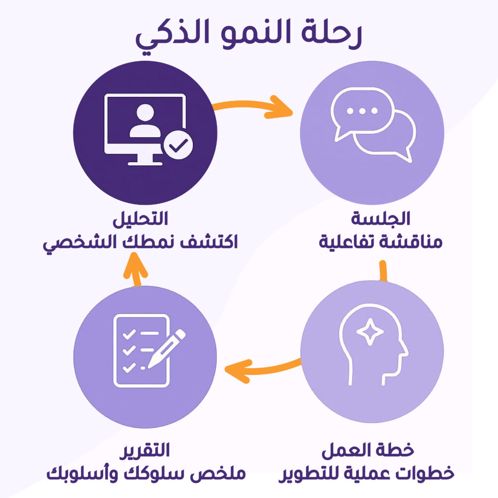 جلسة تحليل شاملة تهدف إلى مساعدتك على اكتساب فهم أعمق لنفسك، من خلال تقييم علمي يسلّط الضوء على أنماط سلوكك، وصفاتك القيادية، وأسلوبك في التواصل واتخاذ القرار، مع مساعدتك في بناء خطة تطوير شخصي عملية تنطلق من نتائجك واحتياجاتك.